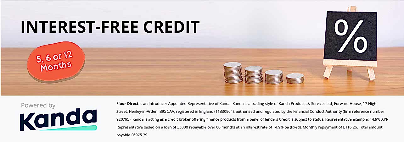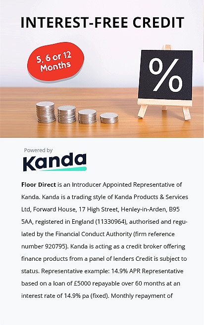 Floor Direct Ltd. is an Introducer Appointed Representative of Kanda. Kanda is a trading style of Kanda Products & Services Ltd, Forward House, 17 High Street, Henley-in-Arden, B95 5AA, registered in England (11330964), authorised and regulated by the Financial Conduct Authority (firm reference number 920795). Kanda is acting as a credit broker offering finance products from a panel of lenders Credit is subject to status.